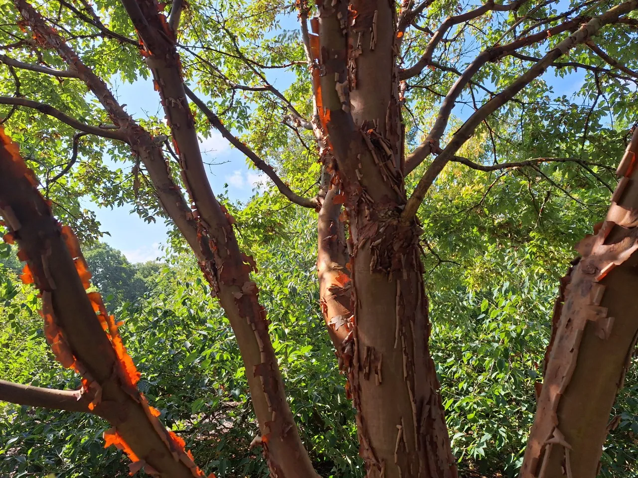 Papieresdoorn is wat ons betreft een van de allermooiste kleine bomen. Het meest opvallend zijn de mooie kaneelkleurige afbladderende bast en de mooie gevormde bladeren. Deze zijn driepuntig met een gekarteld blad die in de herfst verkleuren naar rood-oranje-geel.